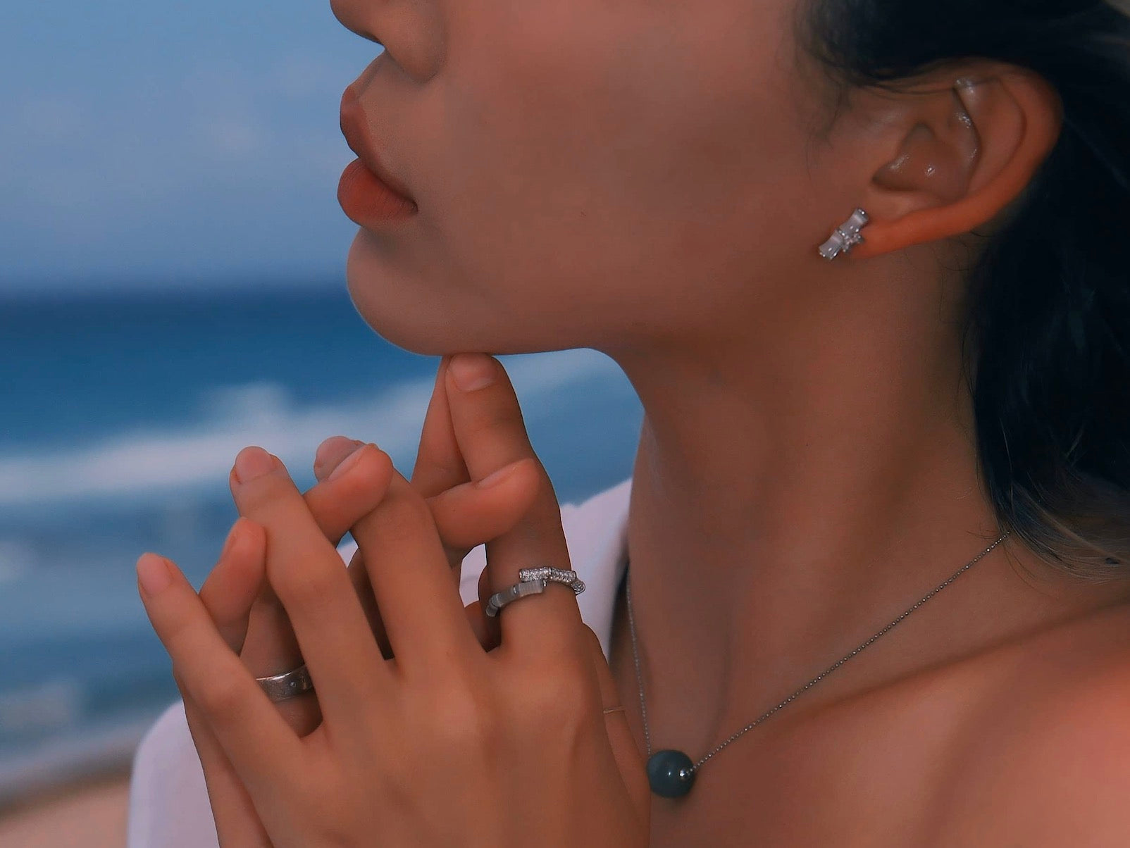 Materials: White Chalcedony, S925 Sterling Silver