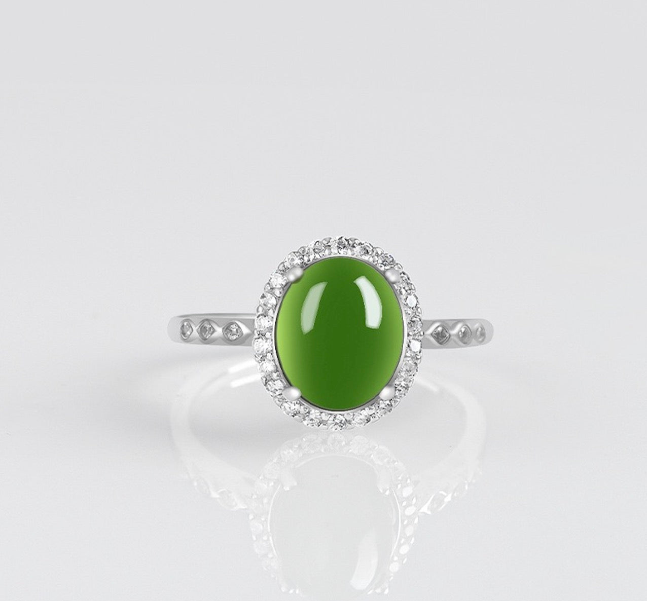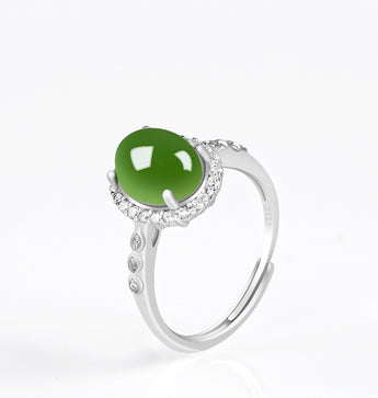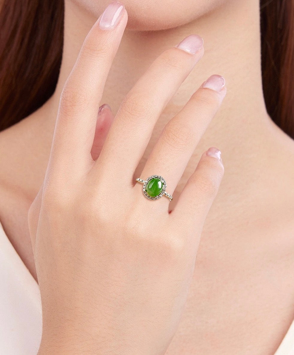 [Deep Forest]Green Jade Oval Egg-faced Ring