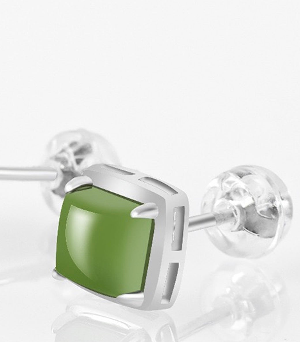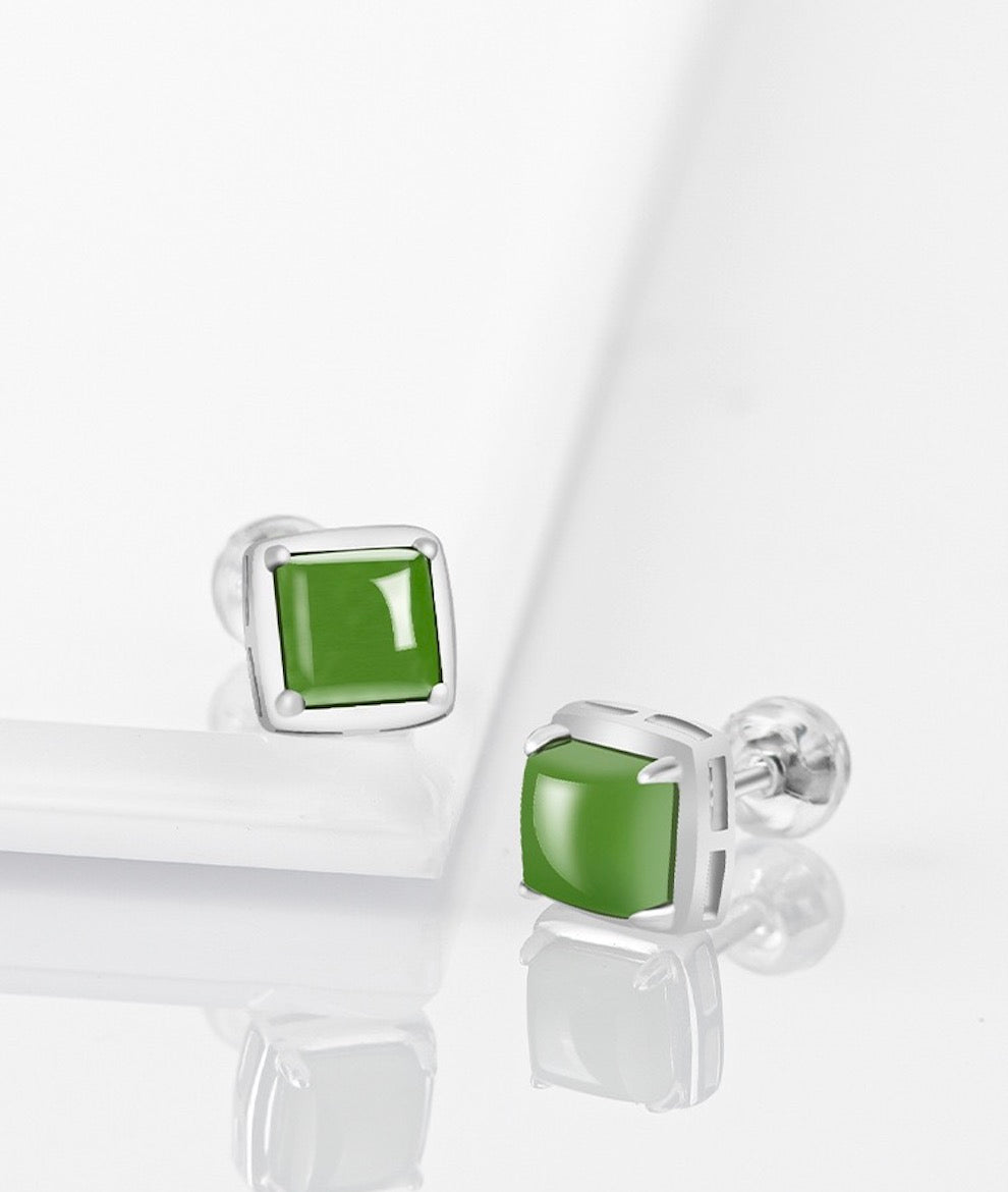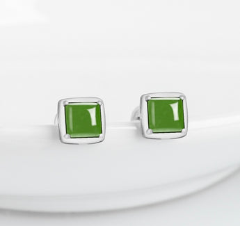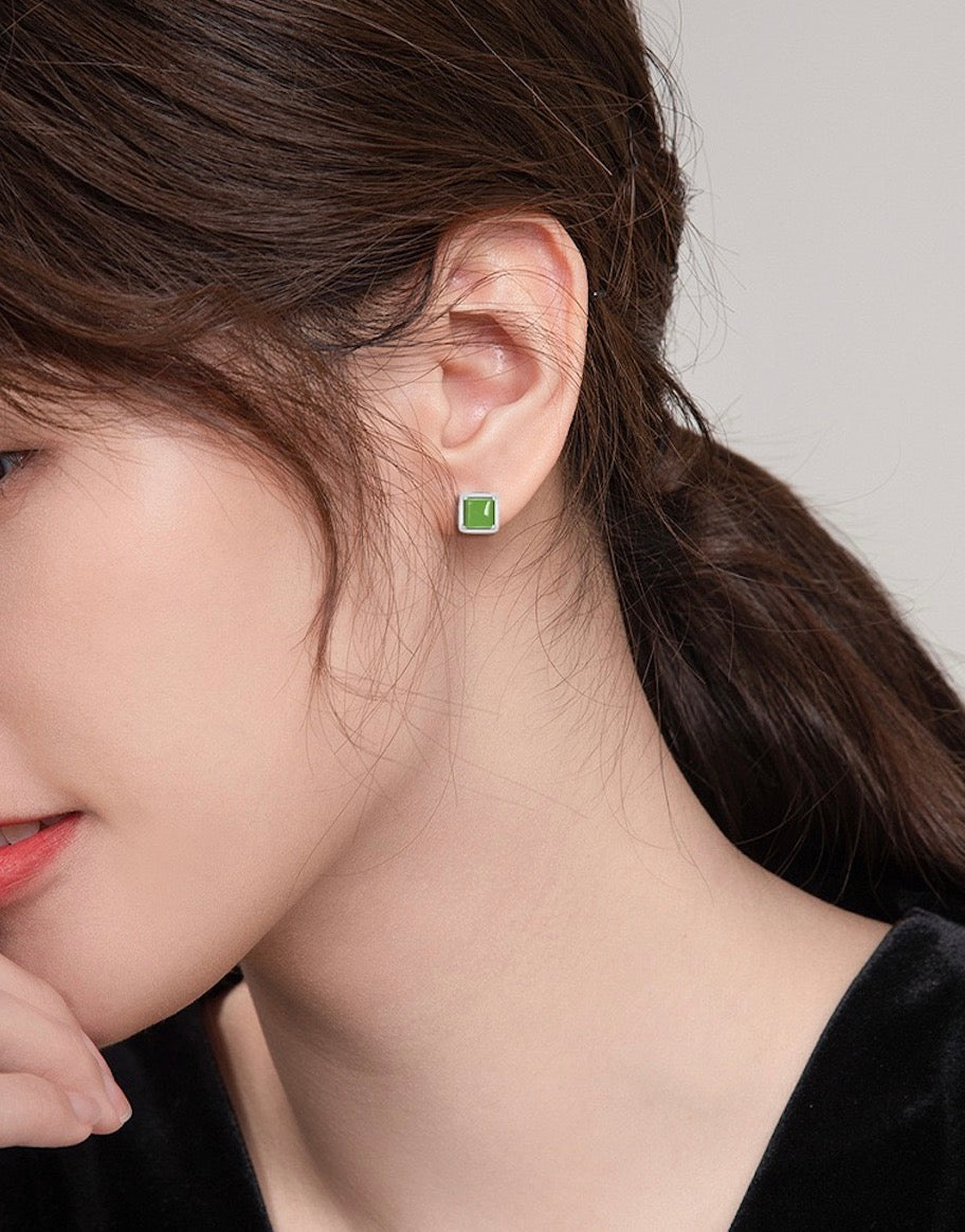 [Deep Forest]Green Jade Squre Sugar Stud Earrings