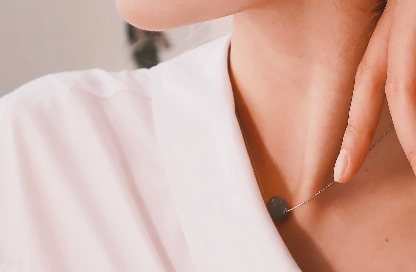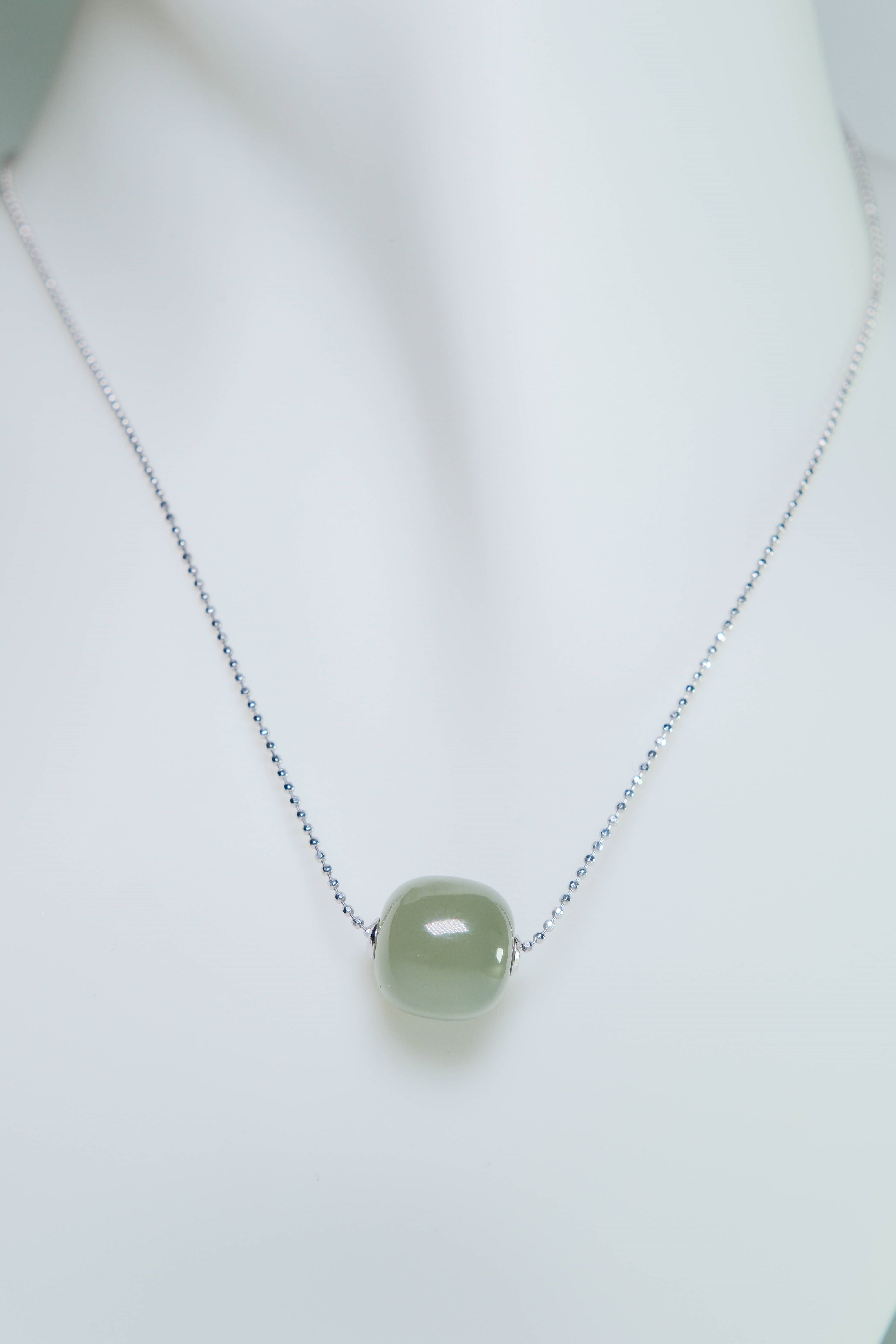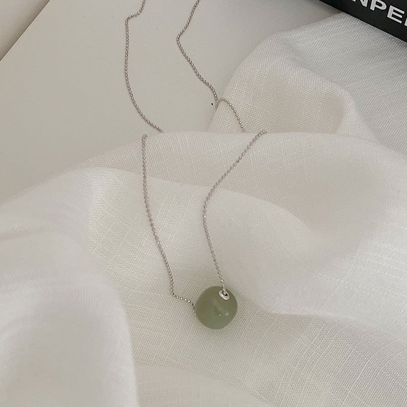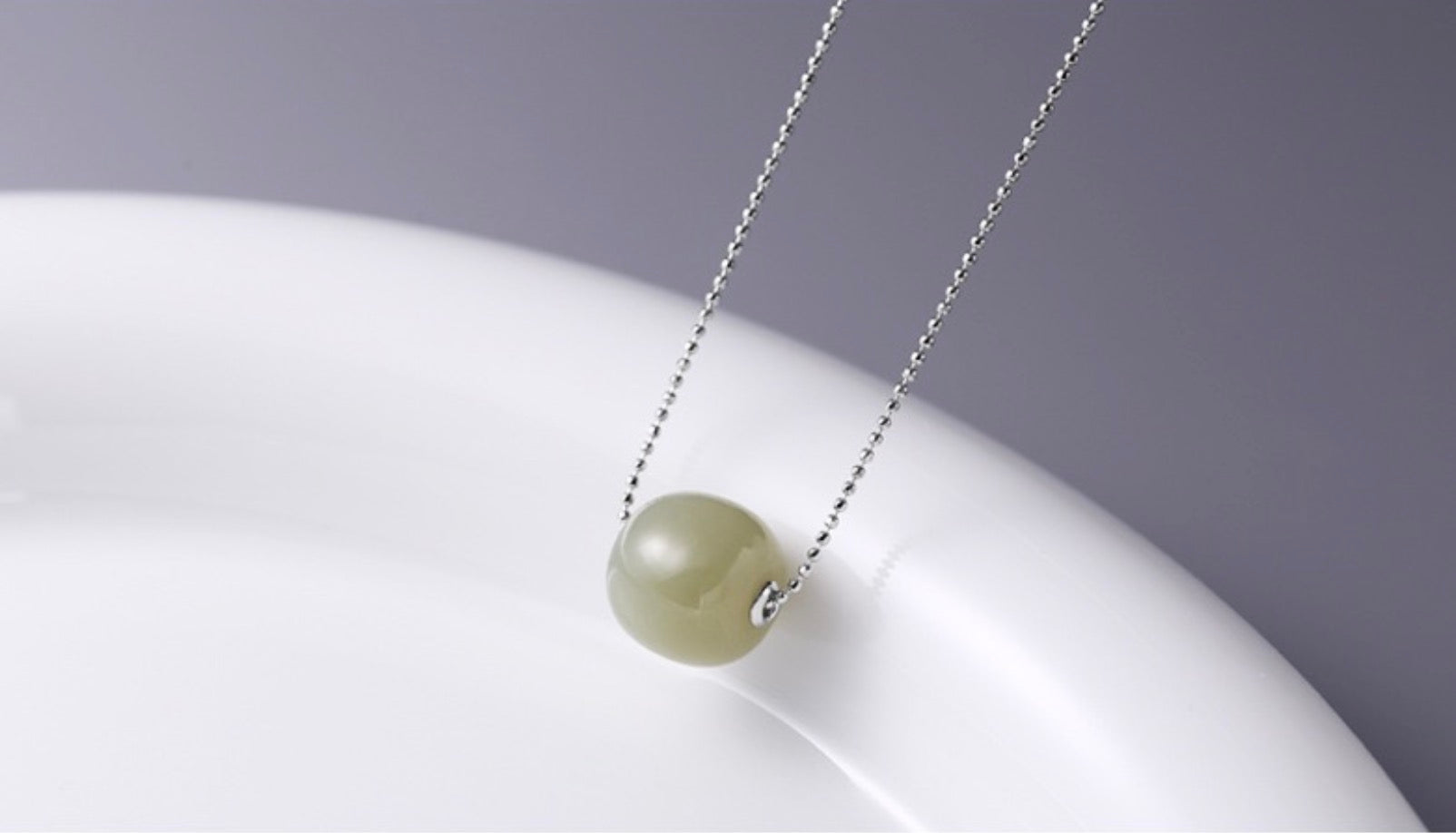 The necklace features a beautifully crafted natural Hetian Jade bead delicately suspended from a S925 sterling silver chain. The natural jade exudes a sense of tranquility and grace, while the sterling silver chain adds a touch of timeless sophistication.
