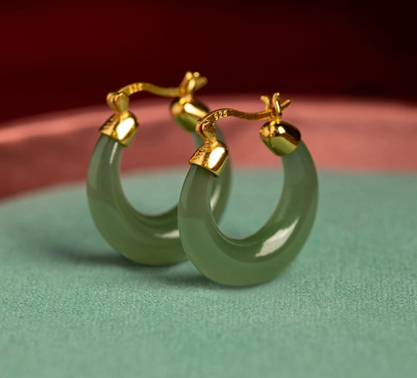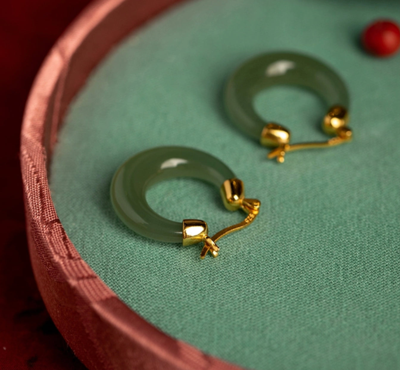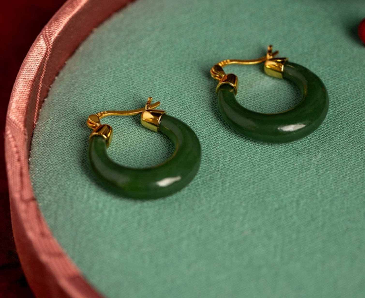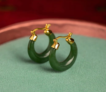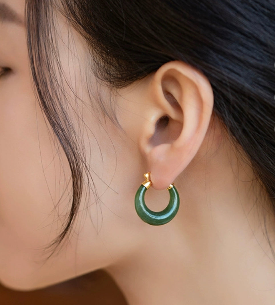 [Deep Forest]Green Jade Hoop Earrings — Natural, Classical and Elegant