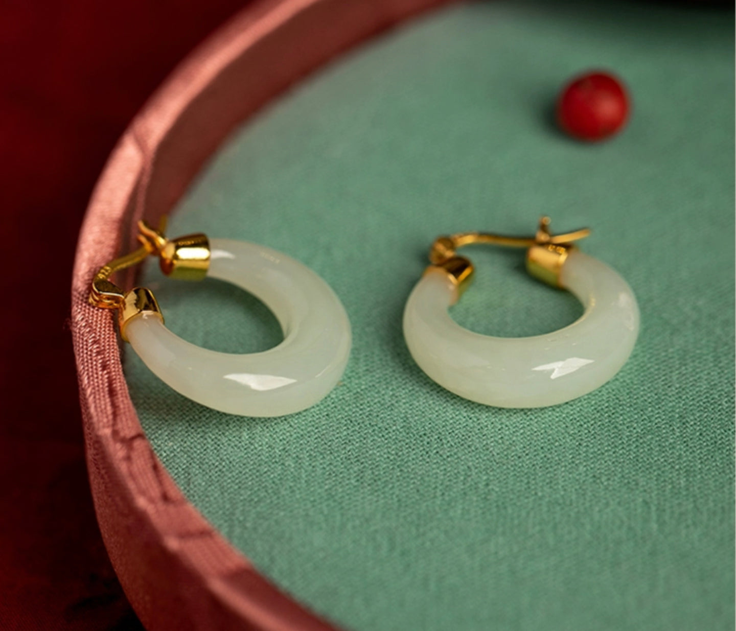 · Natural Hues and Energies: Crafted from carefully selected natural Hetian jade in green, pale green, and white tones, these classical and elegant round earrings bring forth a more natural and classical sense of grace.