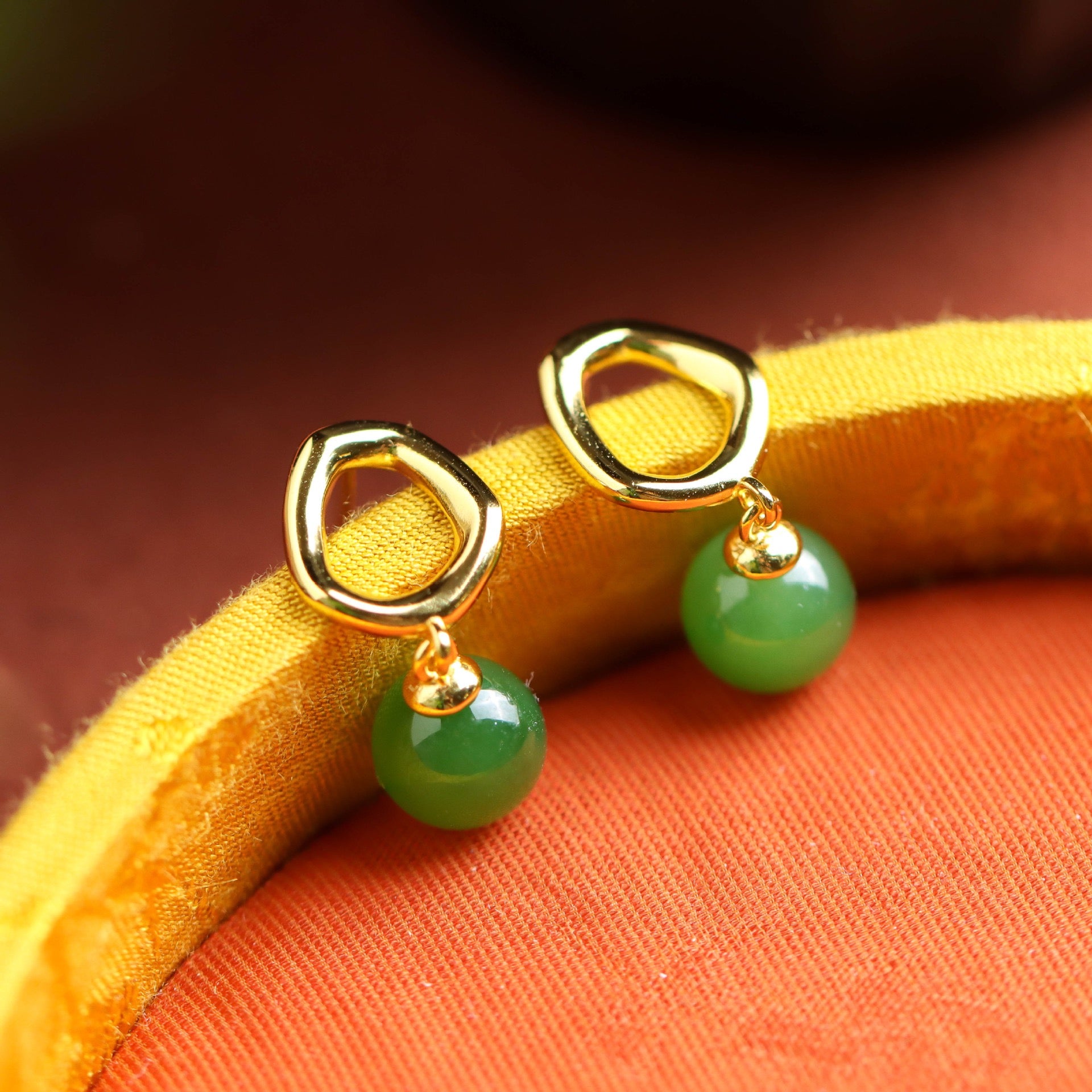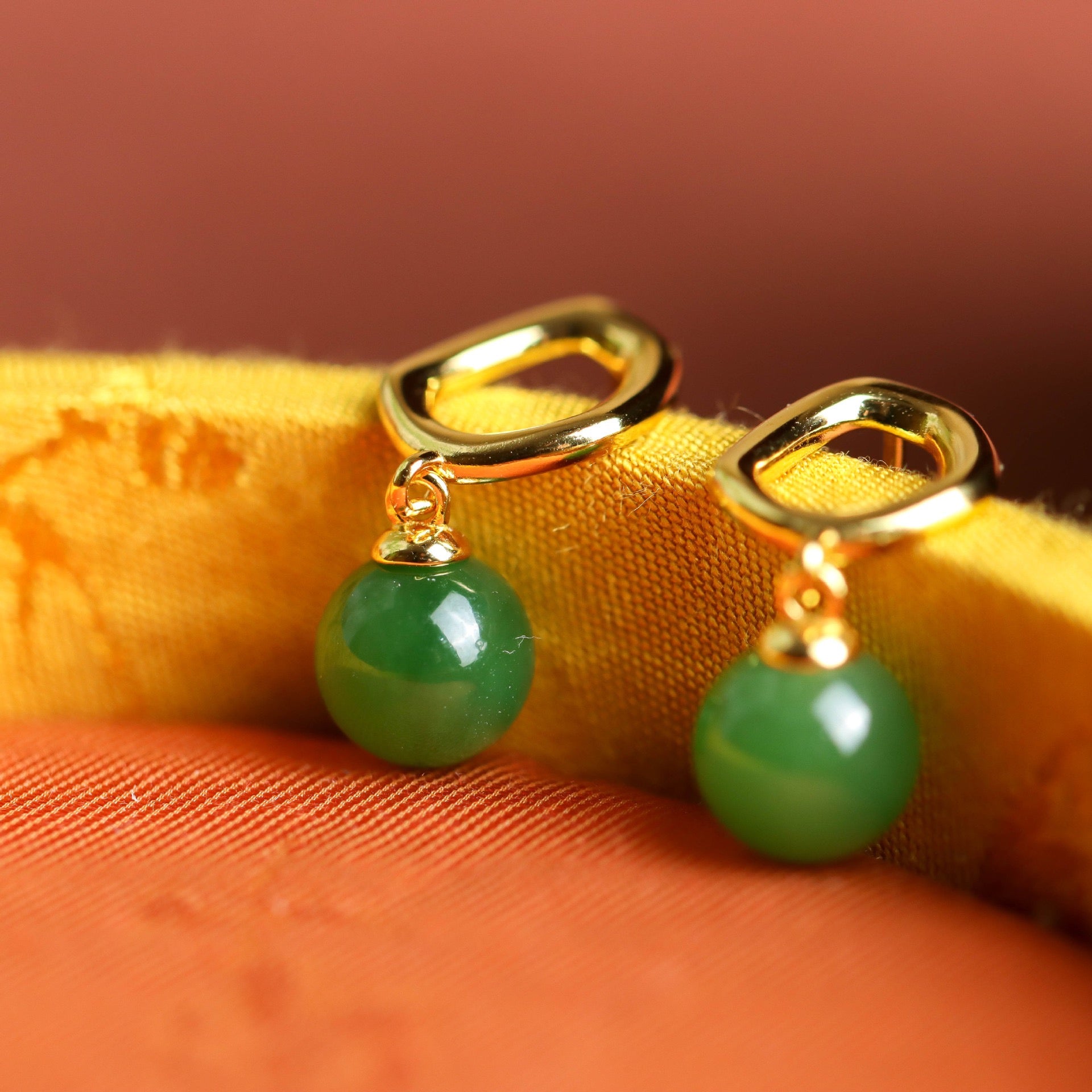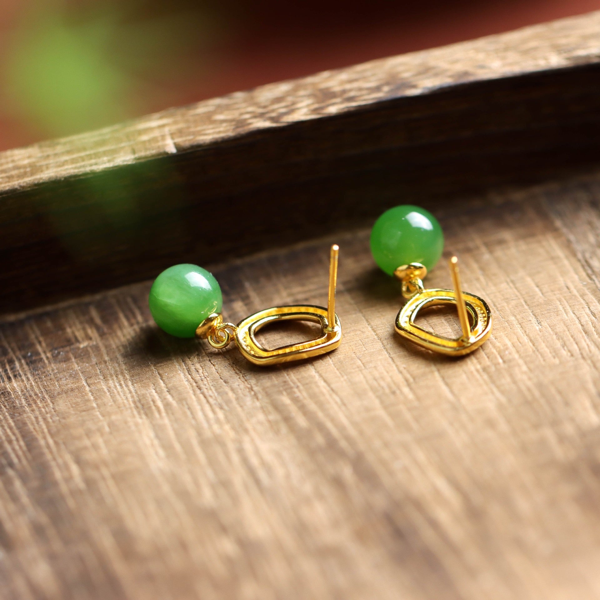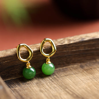 [Deep Forest] Green Hetian Jade Bead Earrings