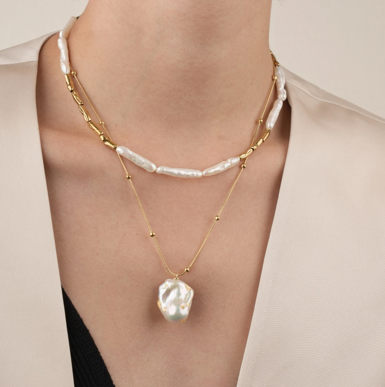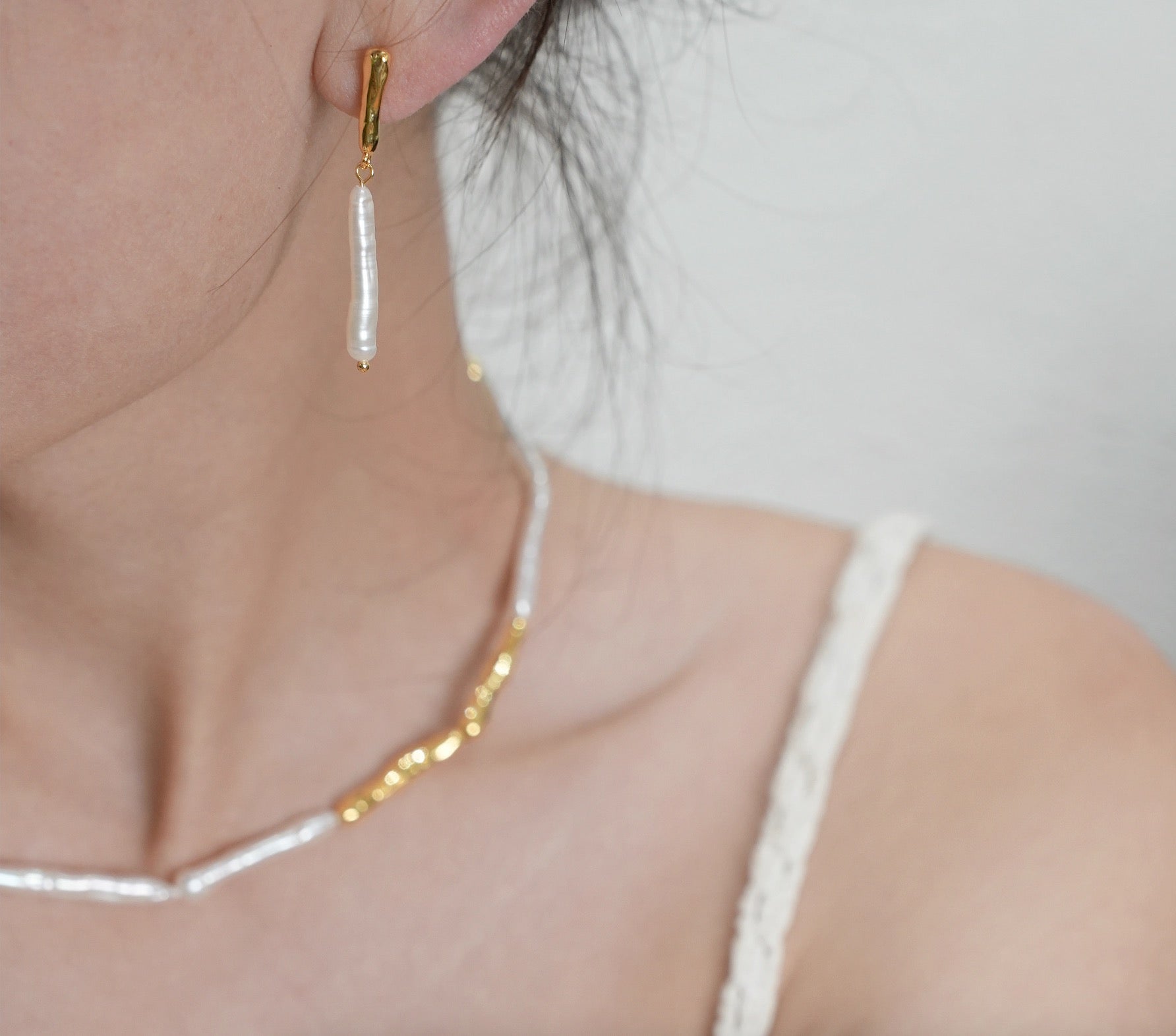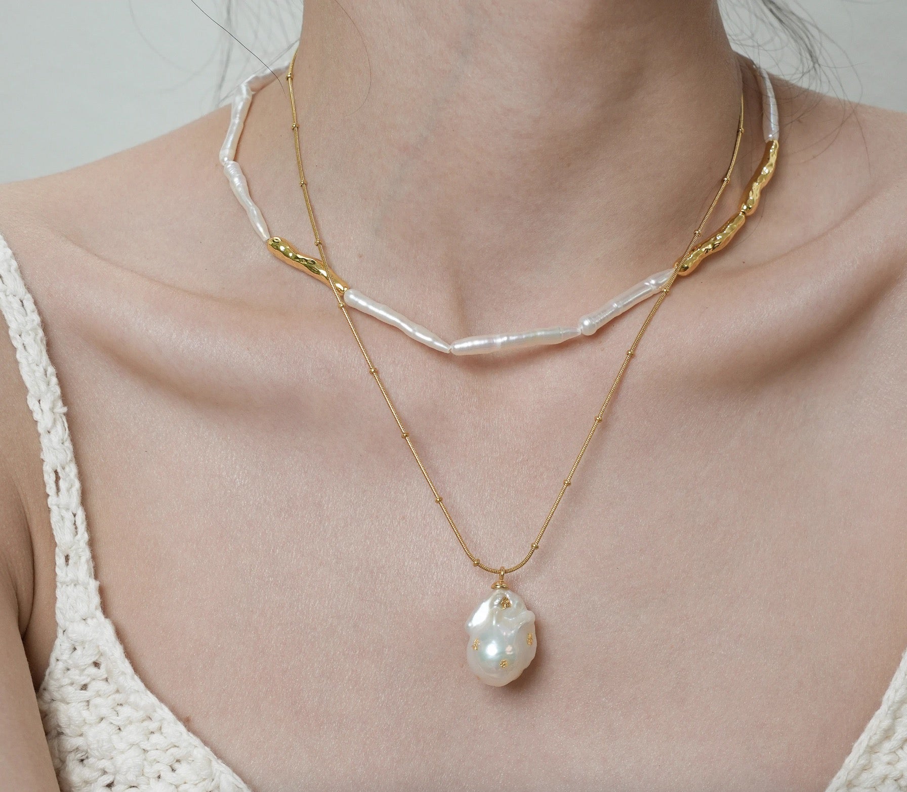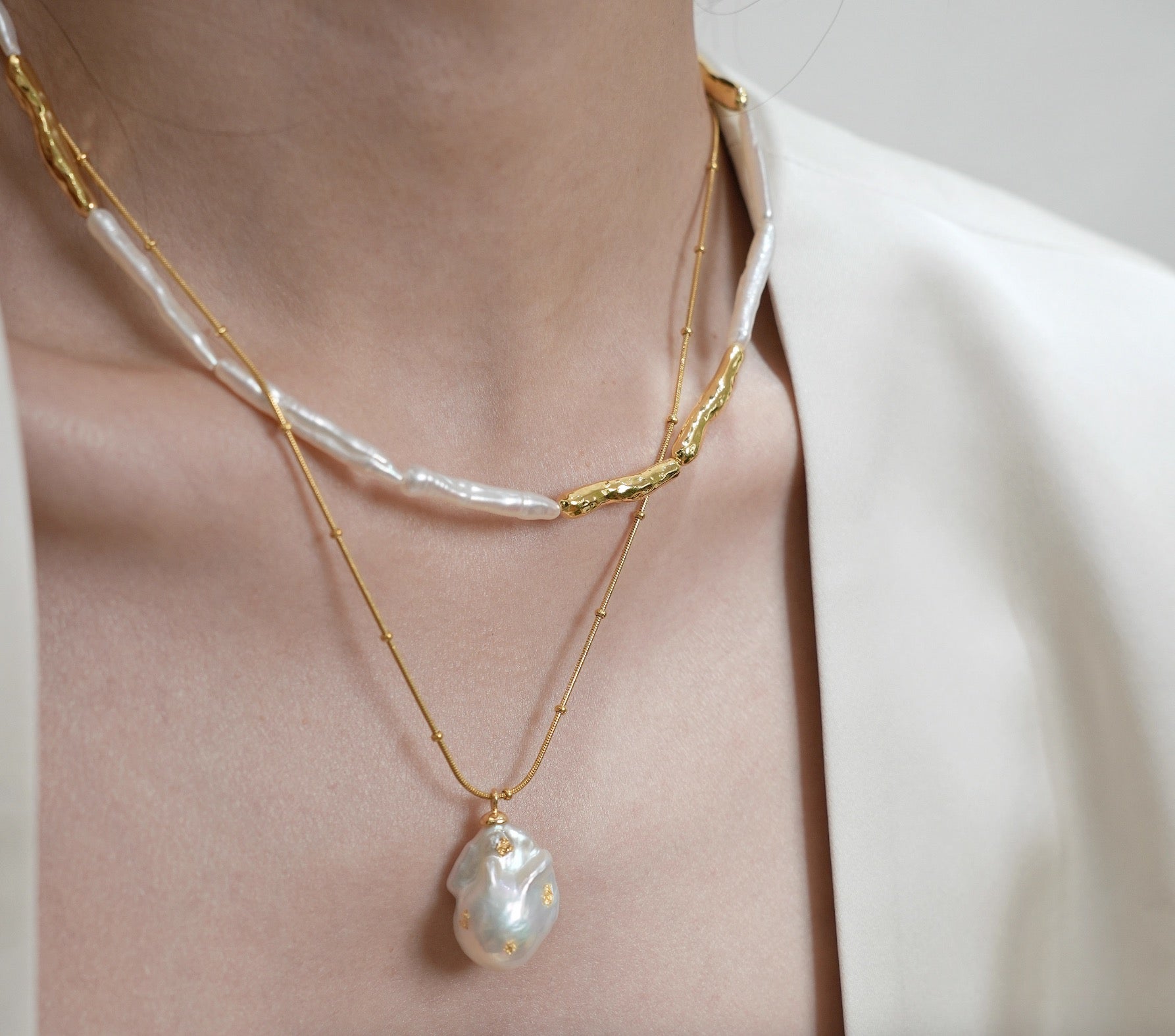 Materials: Natural Baroque Pearls(unique shape), 18K Gold-plated